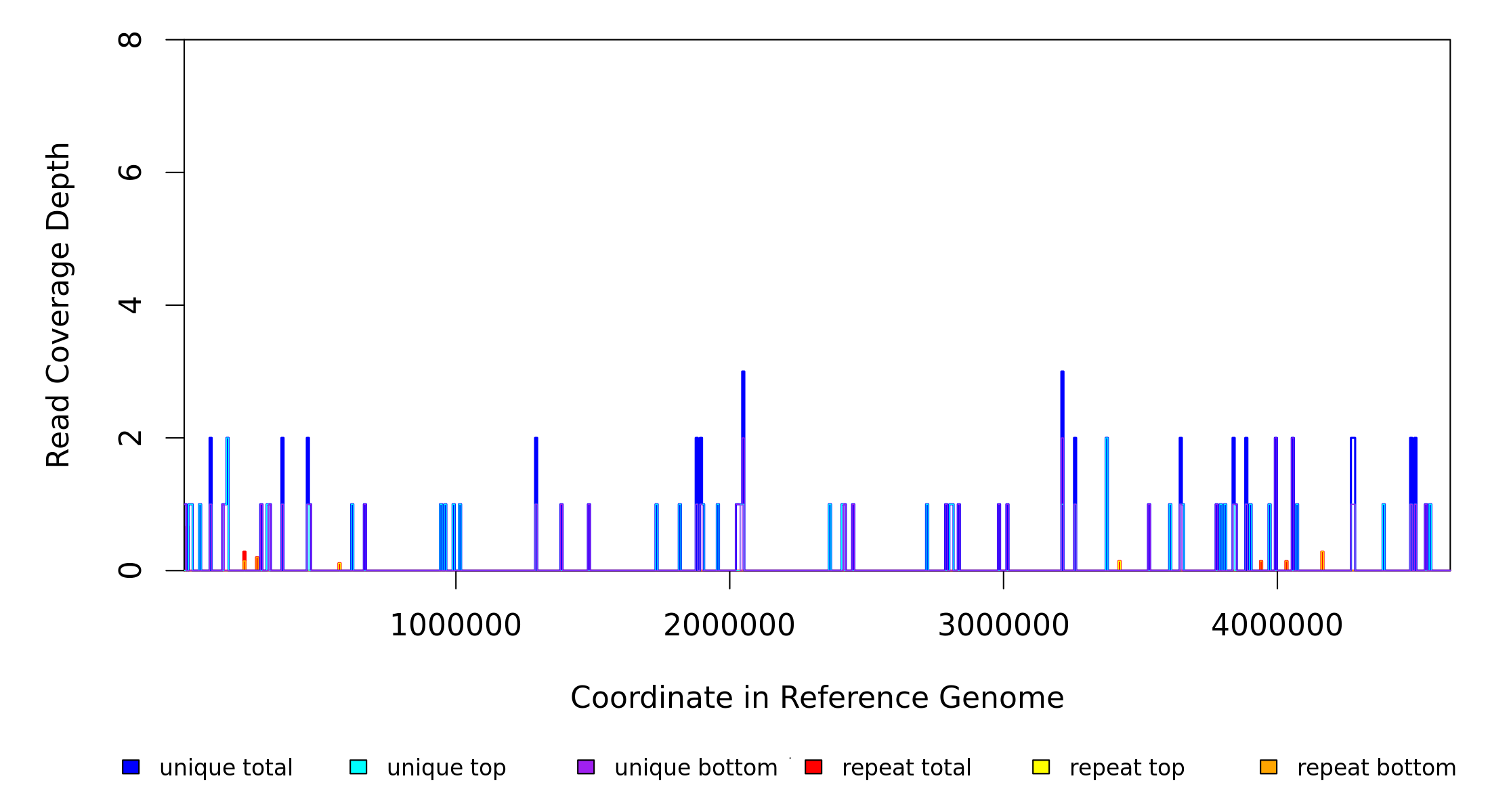 | seq id | start | end | size | ←reads | reads→ | gene | description | |||