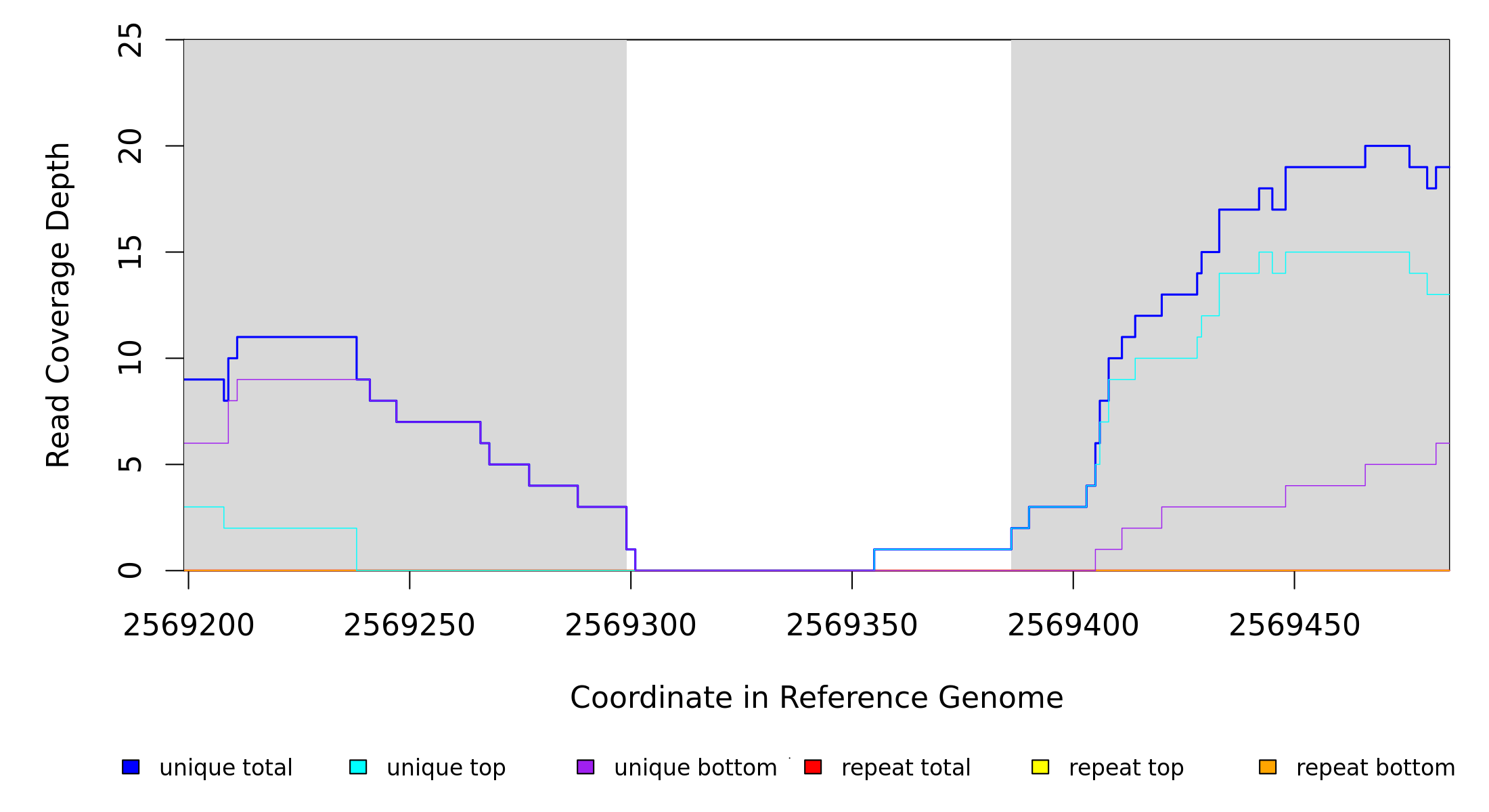 | seq id | start | end | size | ←reads | reads→ | gene | description | |||