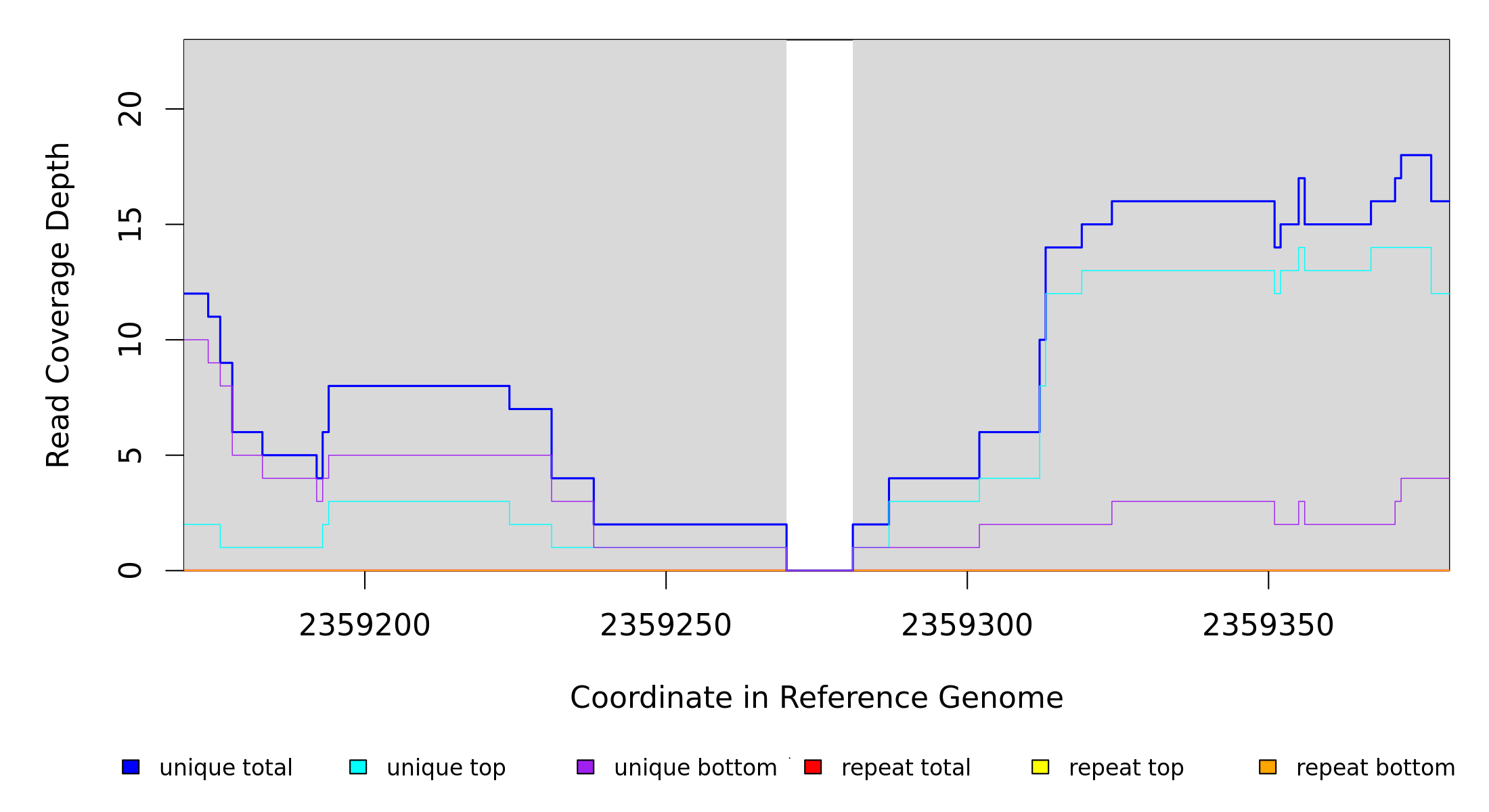 | seq id | start | end | size | ←reads | reads→ | gene | description | |||