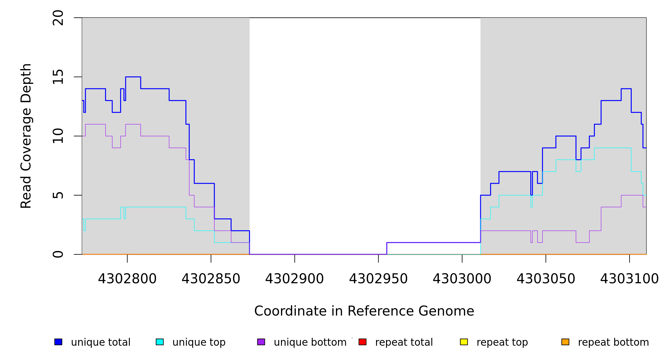 | seq id | start | end | size | ←reads | reads→ | gene | description | |||