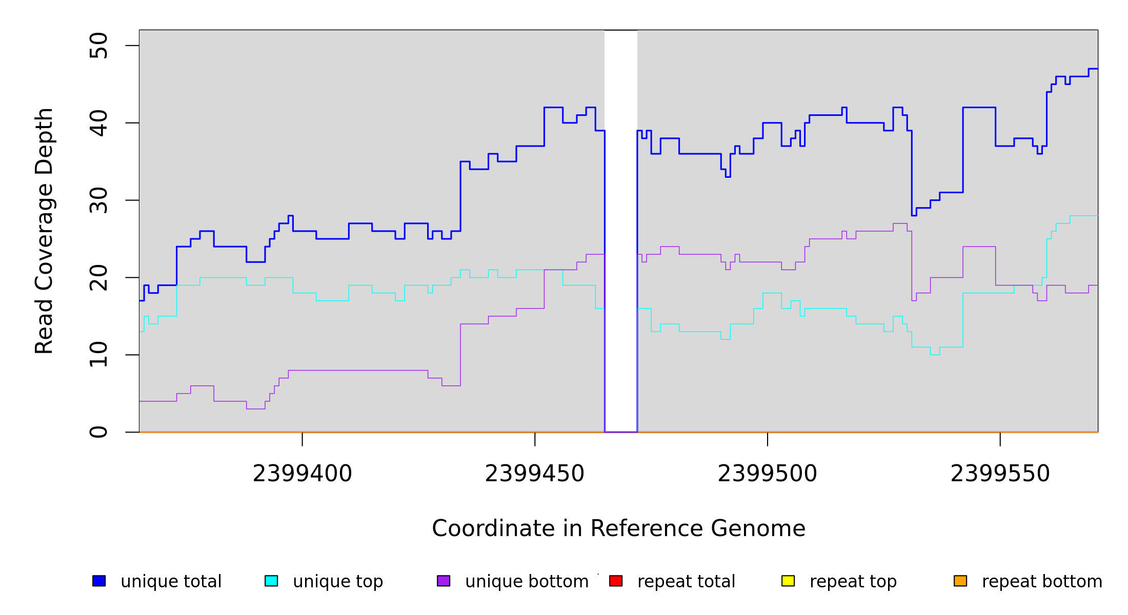 | seq id | start | end | size | ←reads | reads→ | gene | description | |||