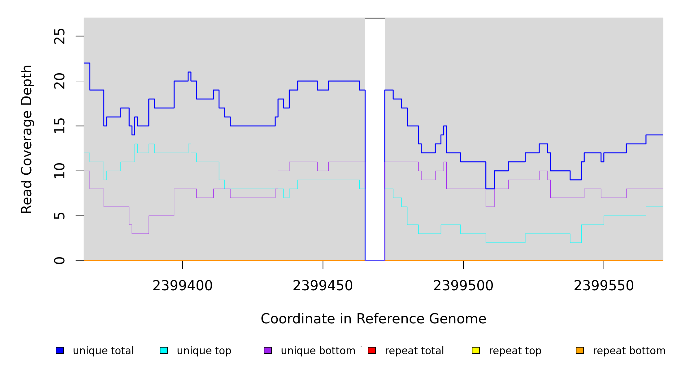 | seq id | start | end | size | ←reads | reads→ | gene | description | |||