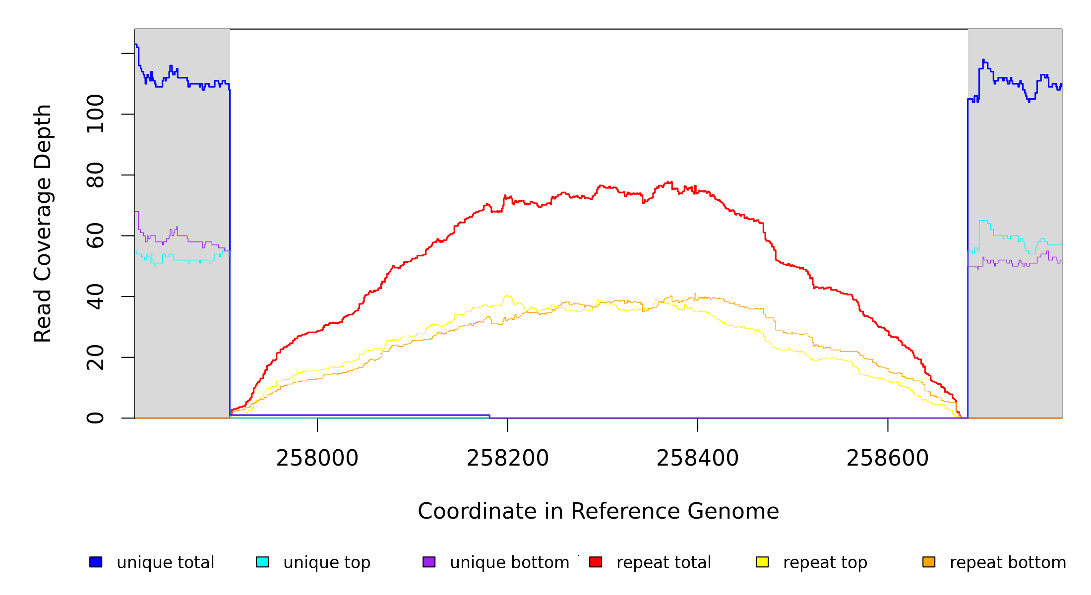 | seq id | start | end | size | ←reads | reads→ | gene | description | |||