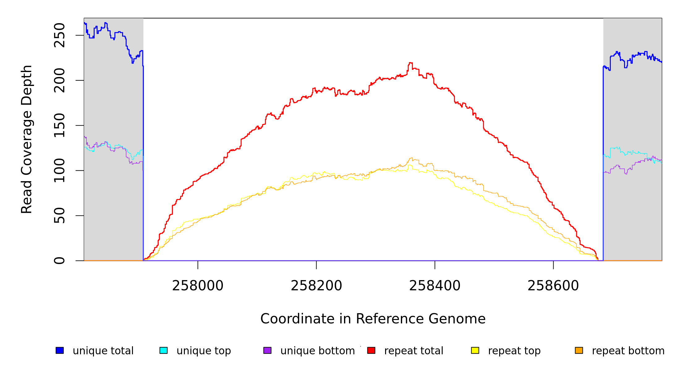 | seq id | start | end | size | ←reads | reads→ | gene | description | |||