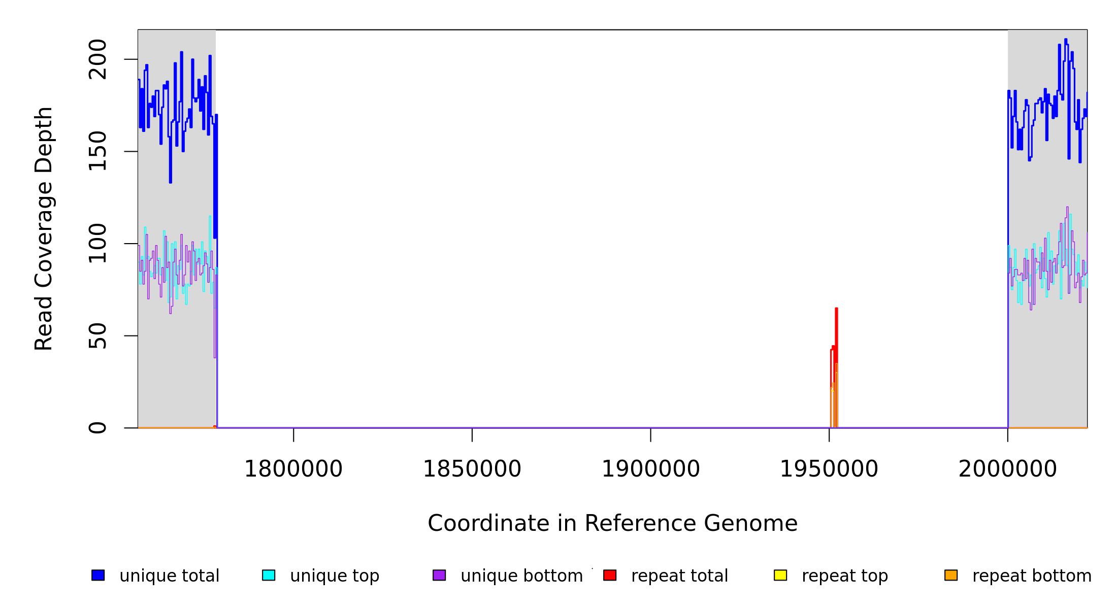 | seq id | start | end | size | ←reads | reads→ | gene | description | |||