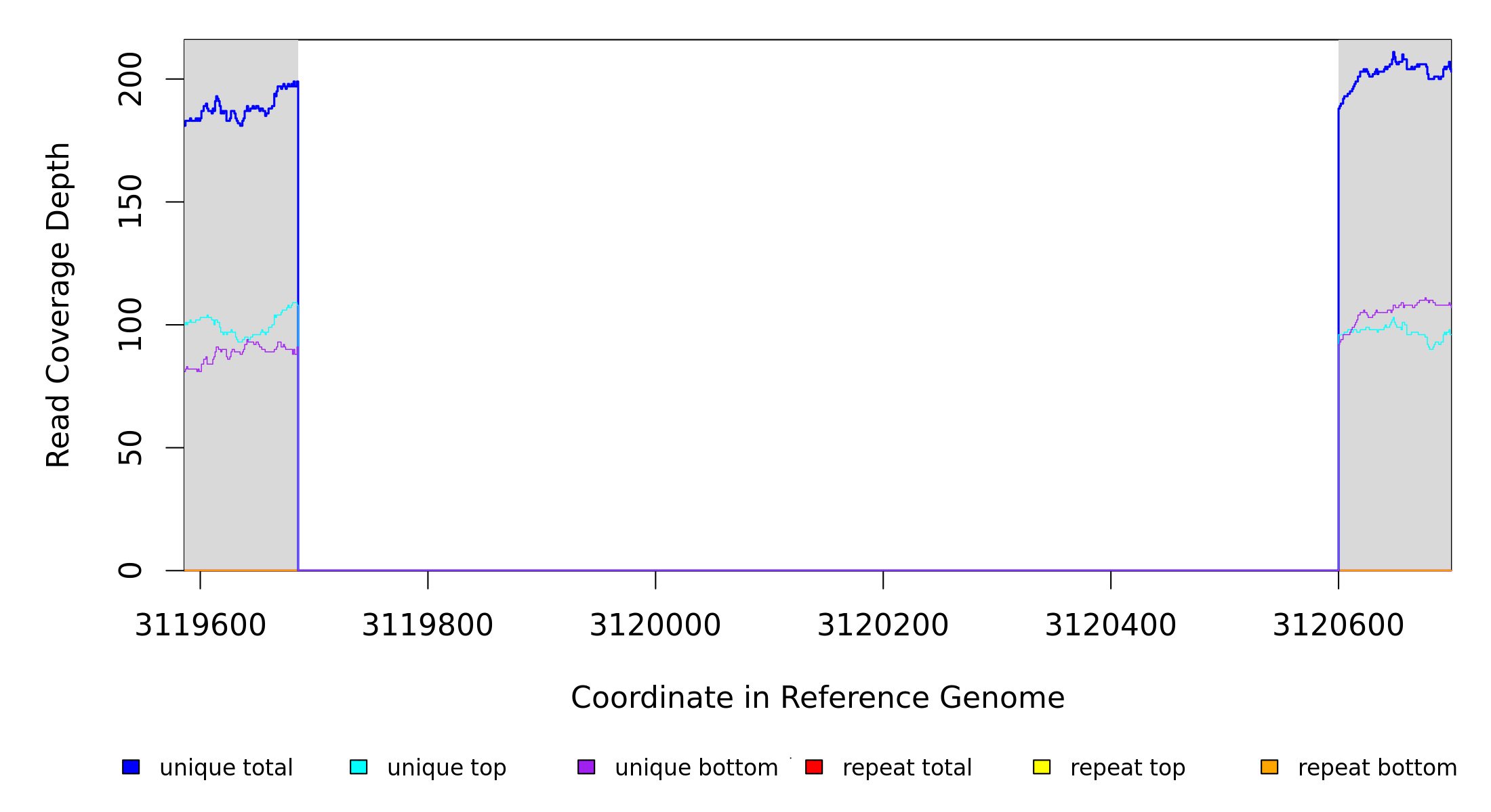 | seq id | start | end | size | ←reads | reads→ | gene | description | |||