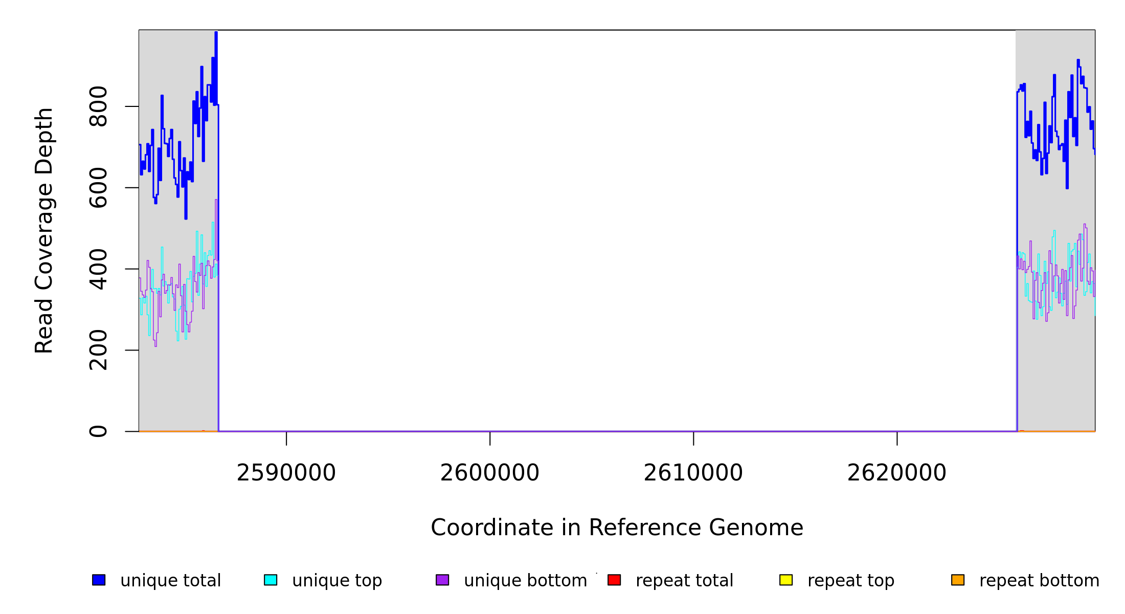 | seq id | start | end | size | ←reads | reads→ | gene | description | |||