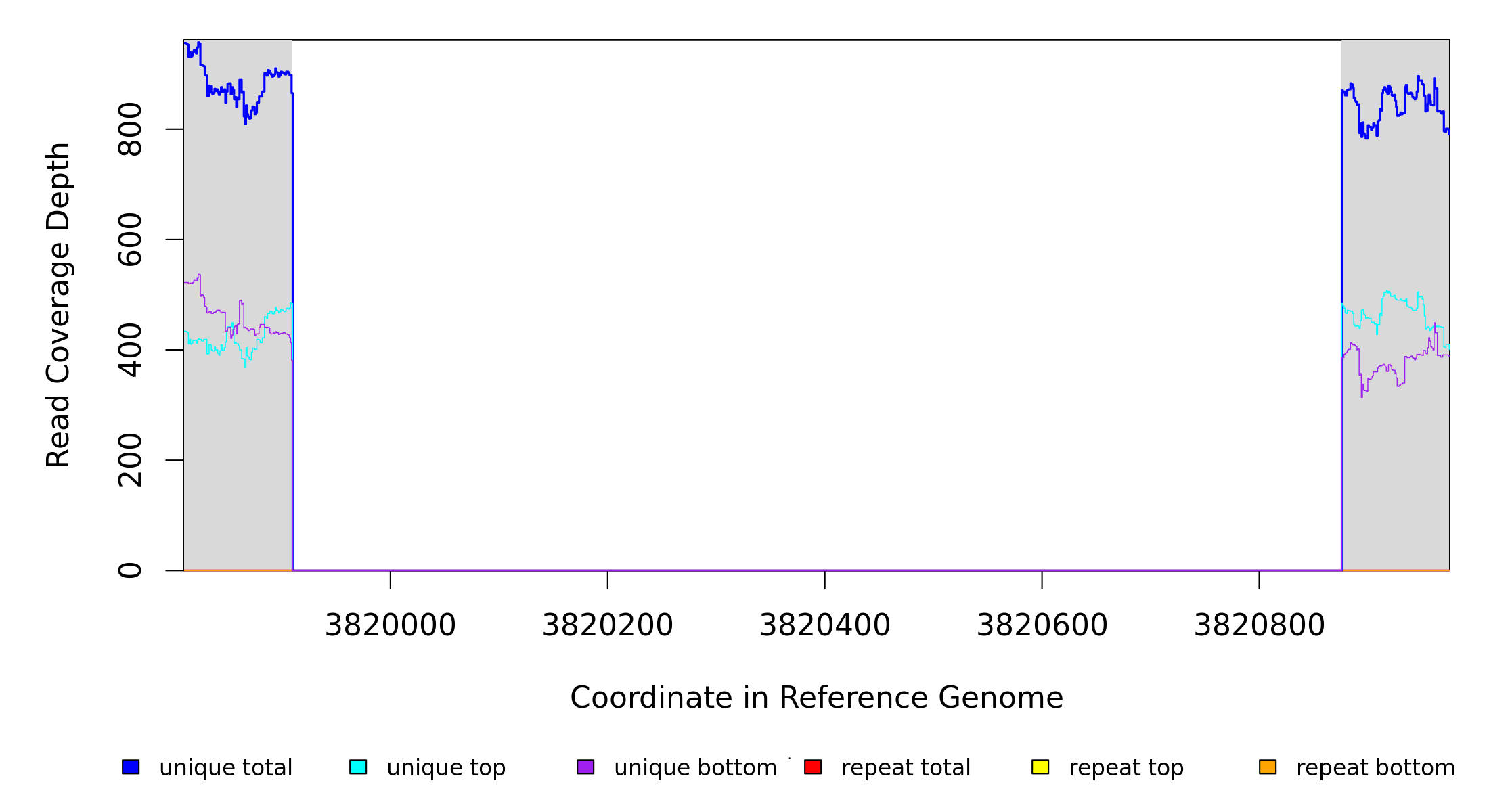 | seq id | start | end | size | ←reads | reads→ | gene | description | |||