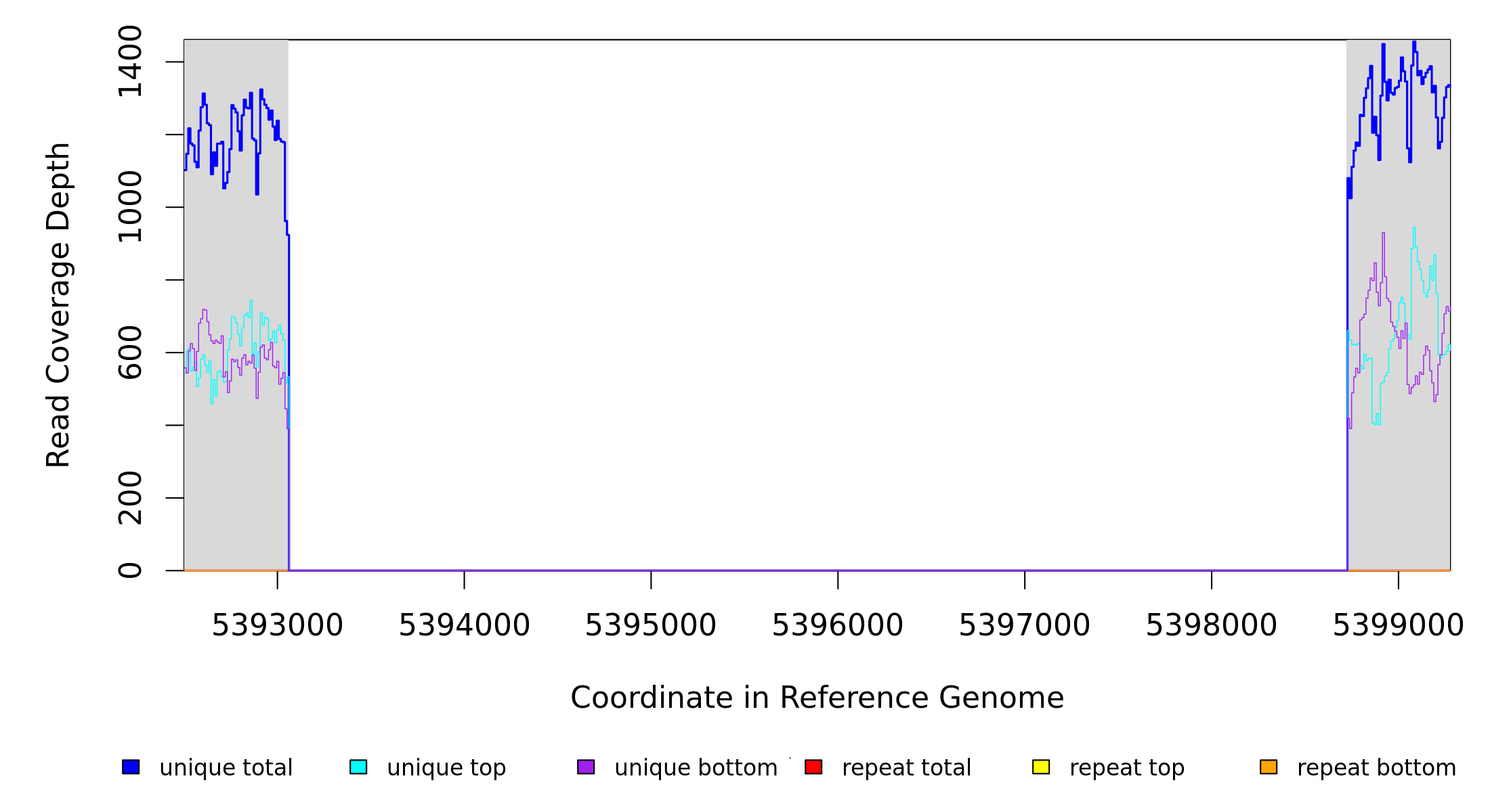 | seq id | start | end | size | ←reads | reads→ | gene | description | |||