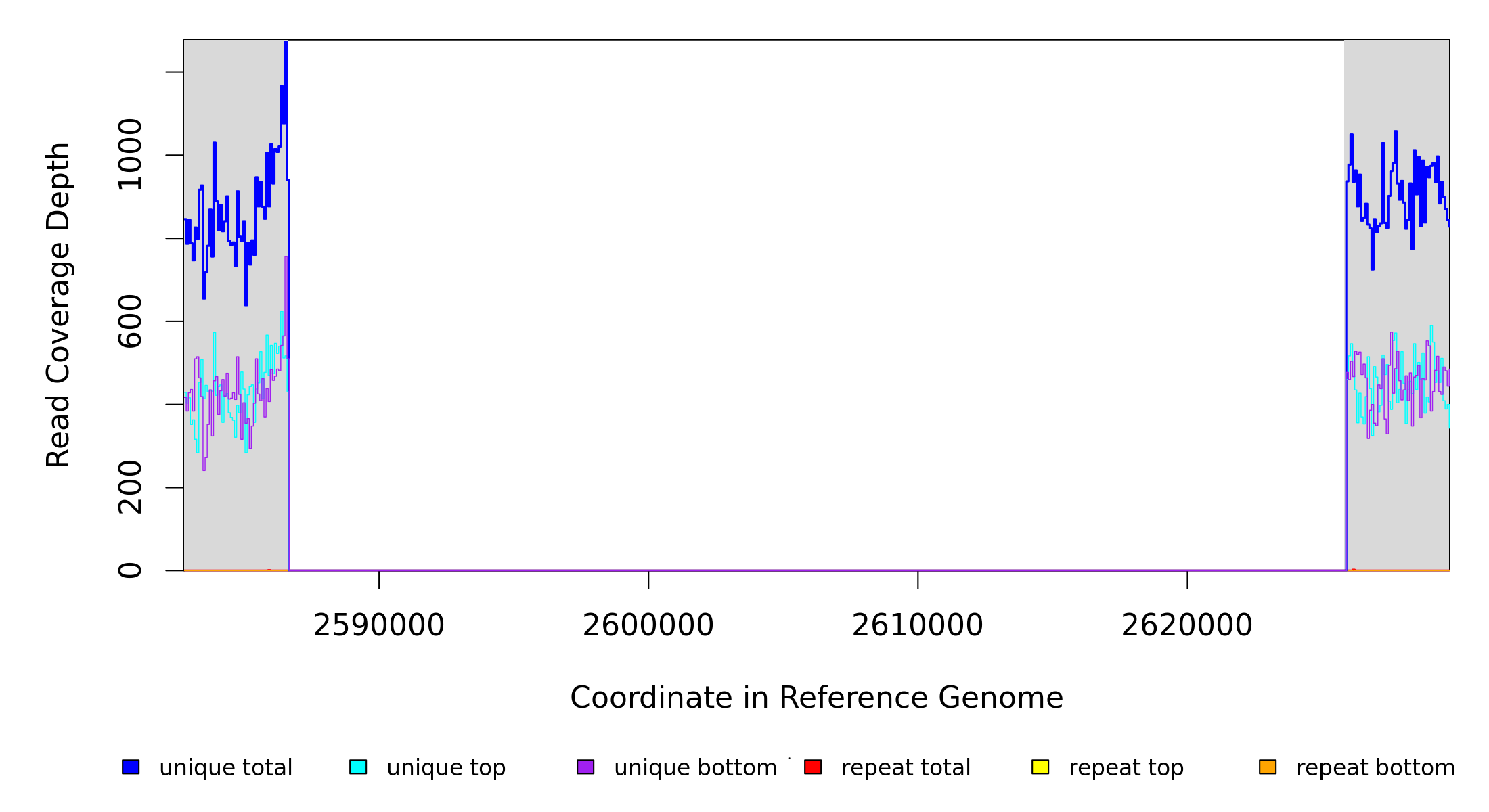 | seq id | start | end | size | ←reads | reads→ | gene | description | |||