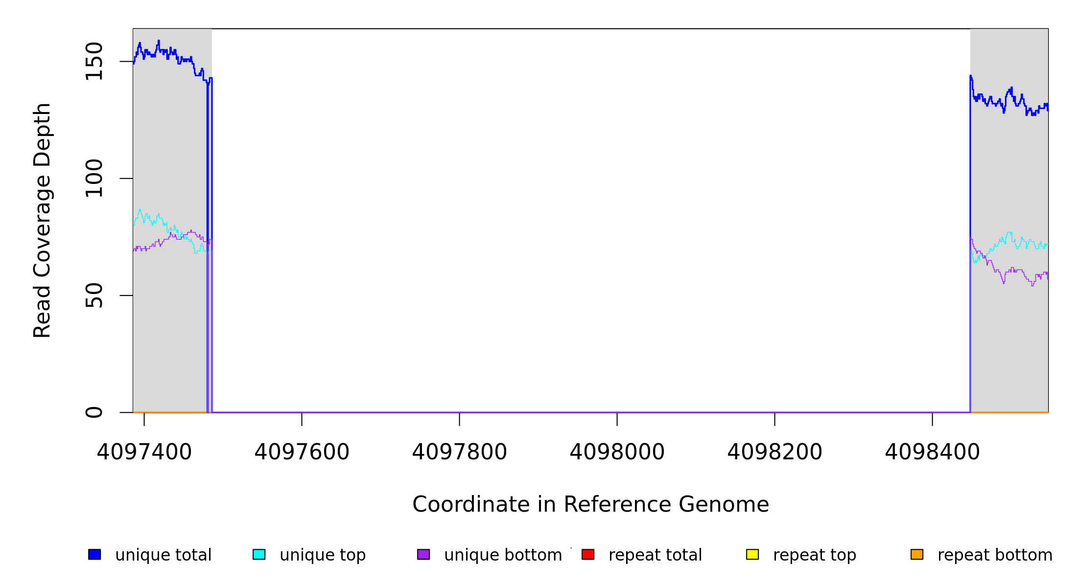 | seq id | start | end | size | ←reads | reads→ | gene | description | |||