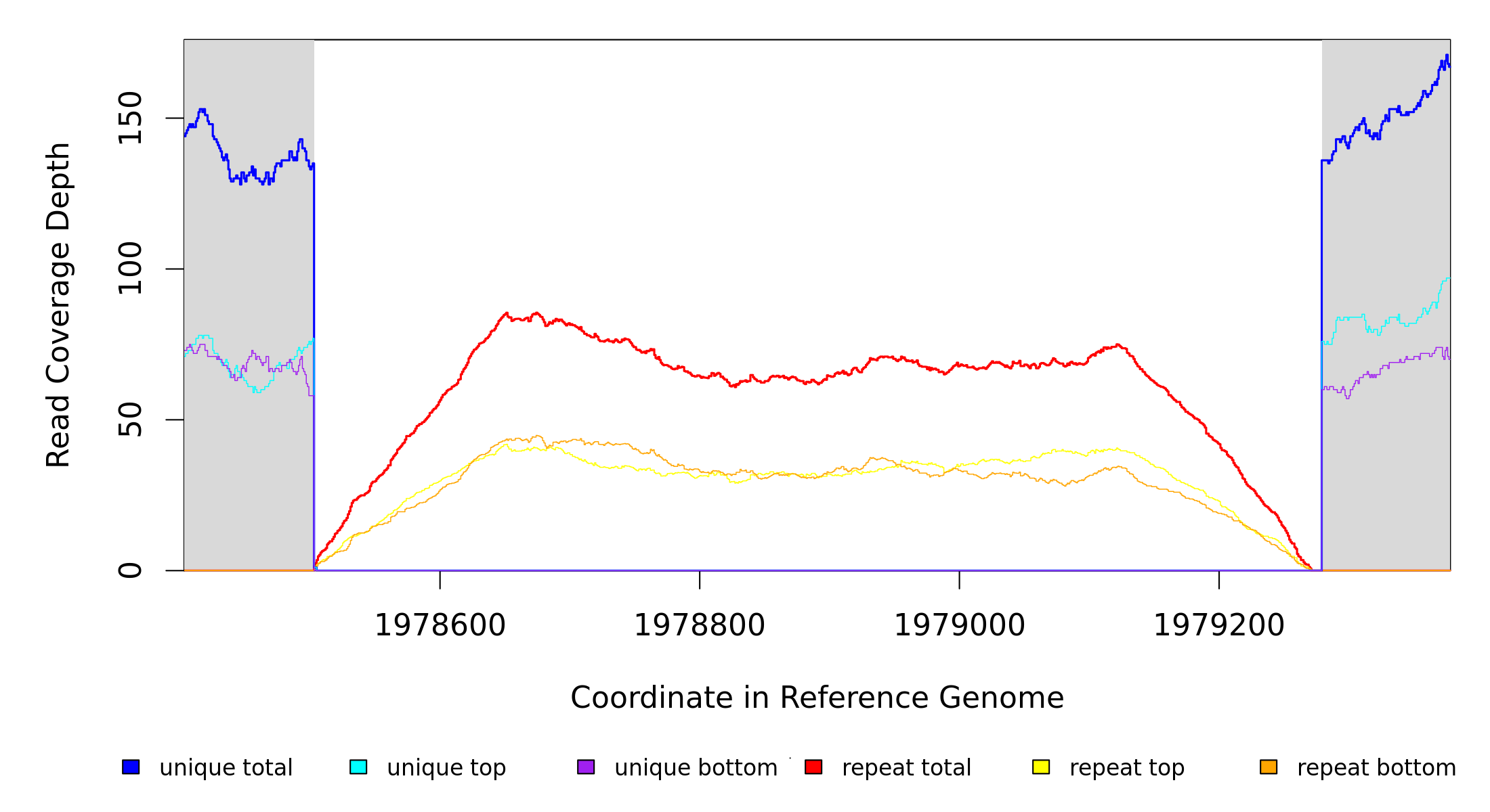 | seq id | start | end | size | ←reads | reads→ | gene | description | |||