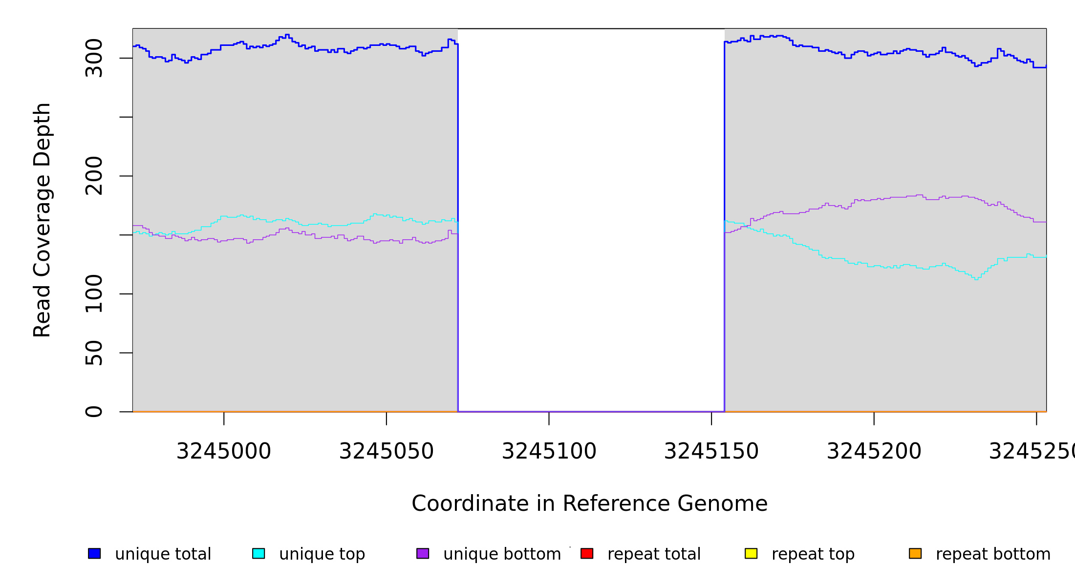 | seq id | start | end | size | ←reads | reads→ | gene | description | |||