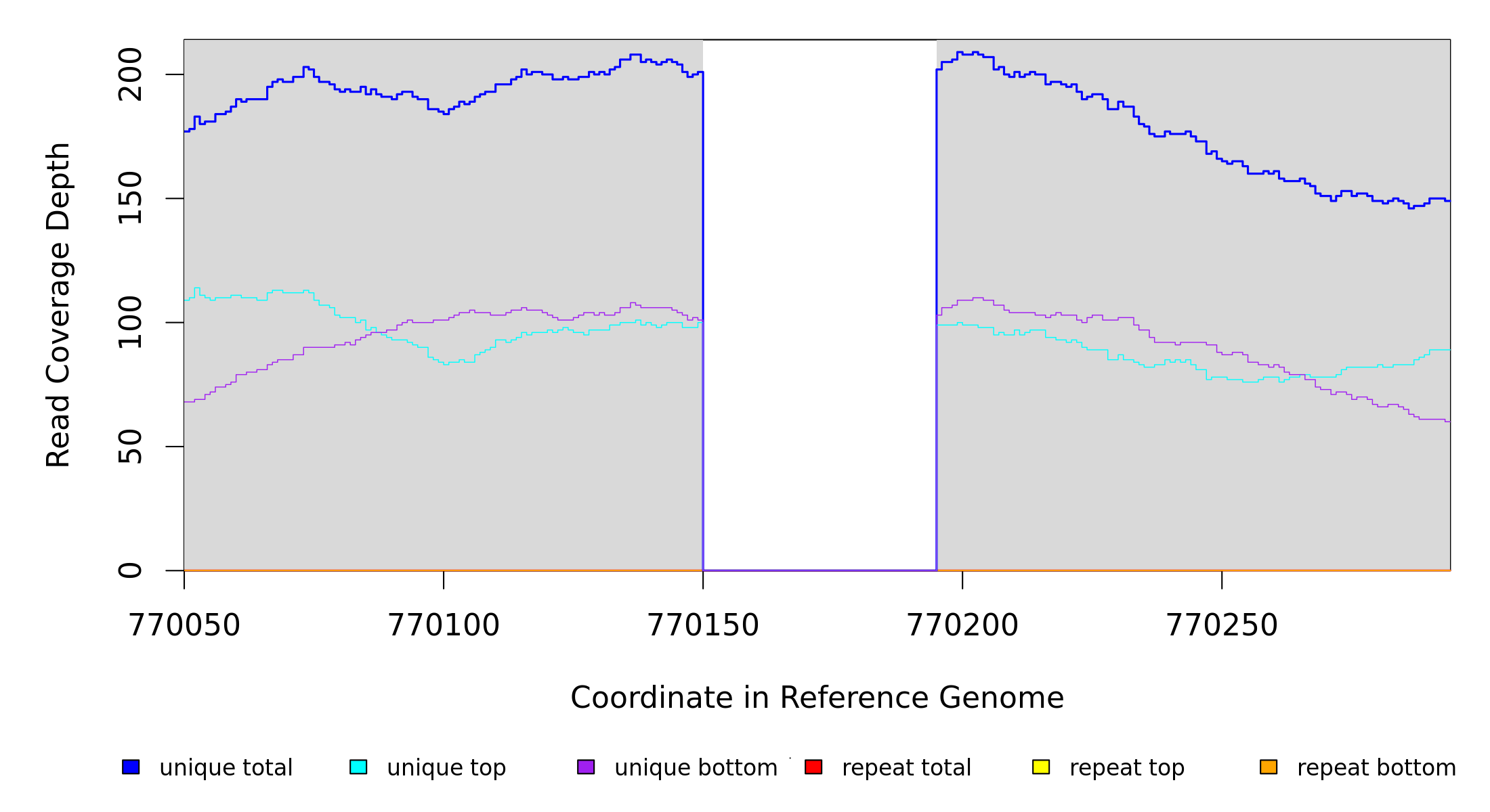 | seq id | start | end | size | ←reads | reads→ | gene | description | |||