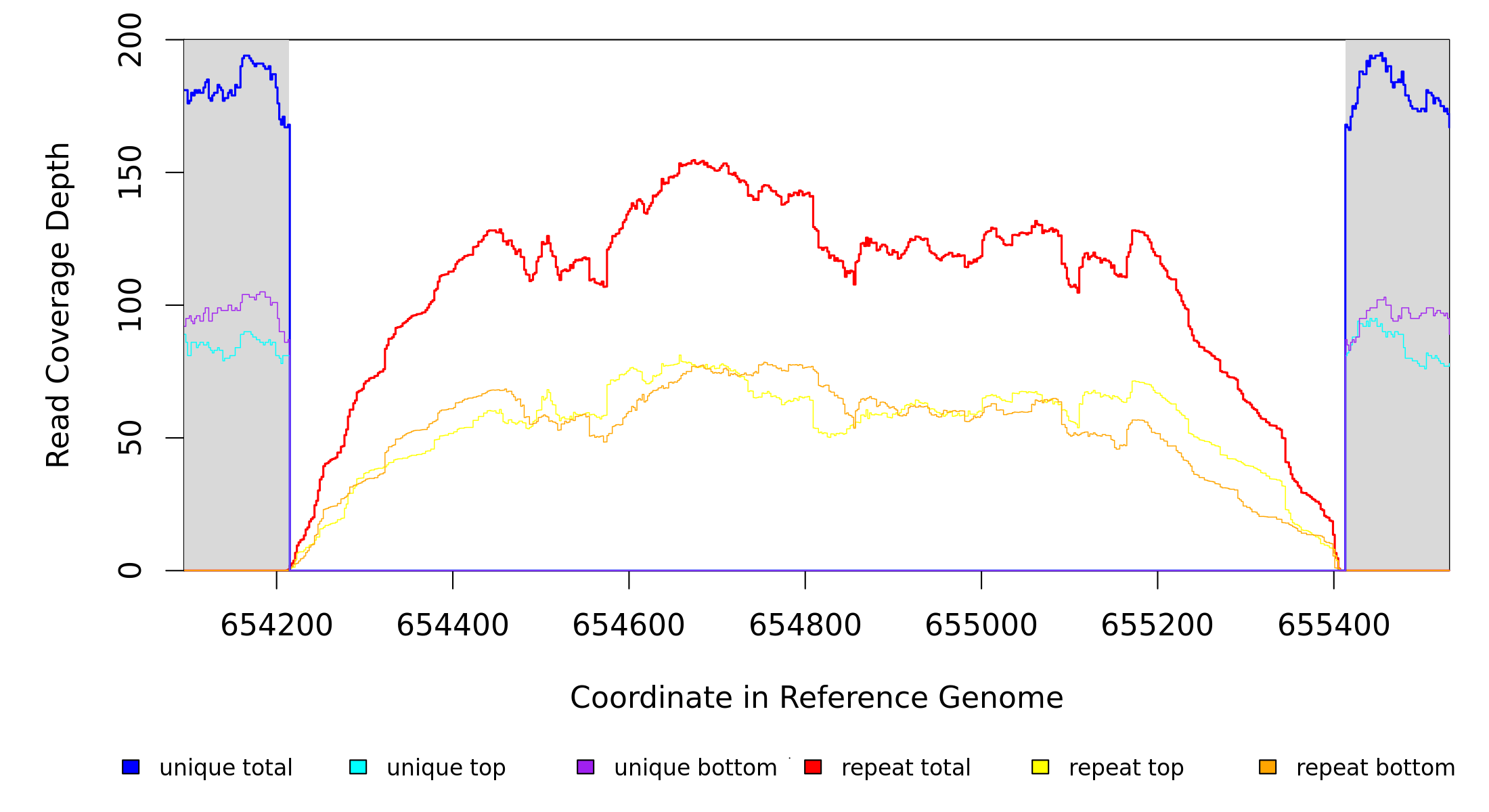 | seq id | start | end | size | ←reads | reads→ | gene | description | |||