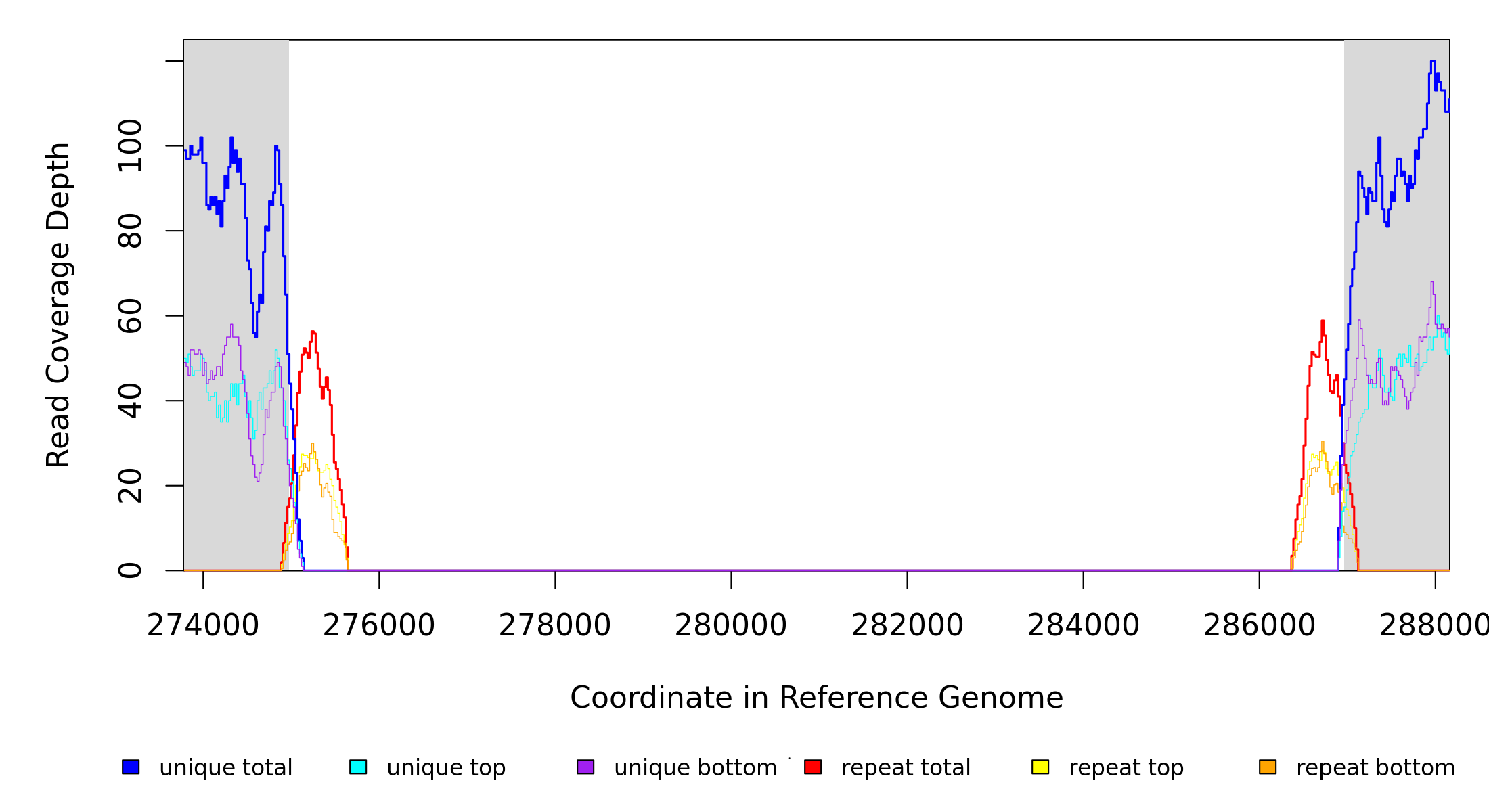 | seq id | start | end | size | ←reads | reads→ | gene | description | |||