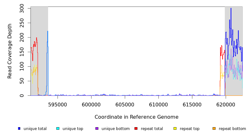| seq id | start | end | size | ←reads | reads→ | gene | description | |||