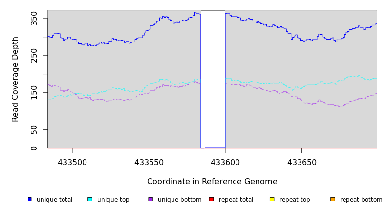 | * | ? | REL606 | = 433583 | 0 (0.000) | 358 (1.130) | 126/150 | 0.1 | 99.7% | coding (78/273 nt) | hupB | HU, DNA‑binding transcriptional regulator, beta subunit |
