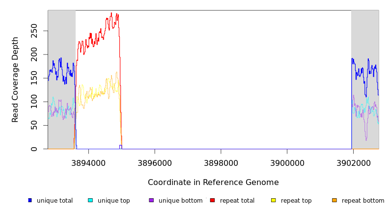 | * | ? | REL606 | = 3652533 | NA (NA) | 175 (1.200) | 88/146 | 0.1 | 100% | noncoding (1443/1443 nt) | IS150 | repeat region |