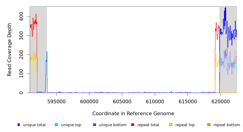 | seq id | start | end | size | ←reads | reads→ | gene | description | |||