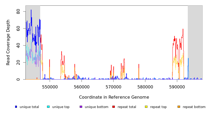 | seq id | start | end | size | ←reads | reads→ | gene | description | |||