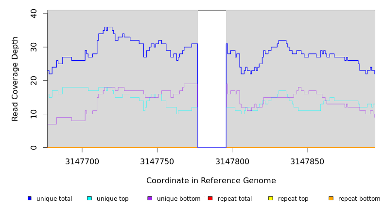 | seq id | start | end | size | ←reads | reads→ | gene | description | |||