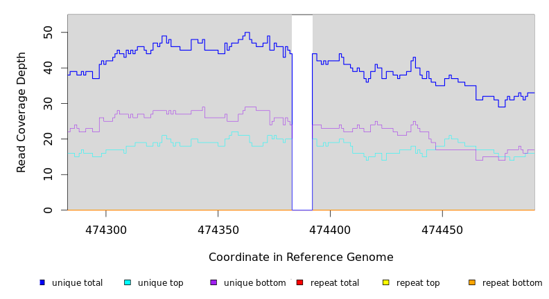 | seq id | start | end | size | ←reads | reads→ | gene | description | |||