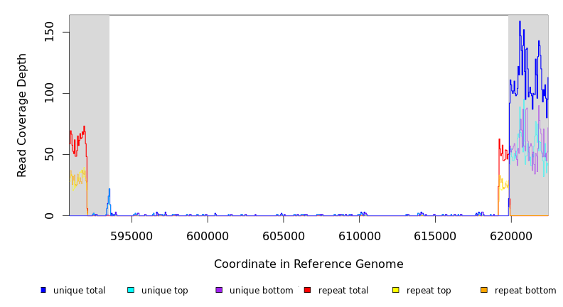 | seq id | start | end | size | ←reads | reads→ | gene | description | |||