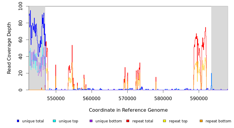 | seq id | start | end | size | ←reads | reads→ | gene | description | |||