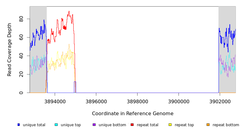 | * | ? | REL606 | = 3652533 | NA (NA) | 67 (1.160) | 51/146 | 0.1 | 100% | noncoding (1443/1443 nt) | IS150 | repeat region |