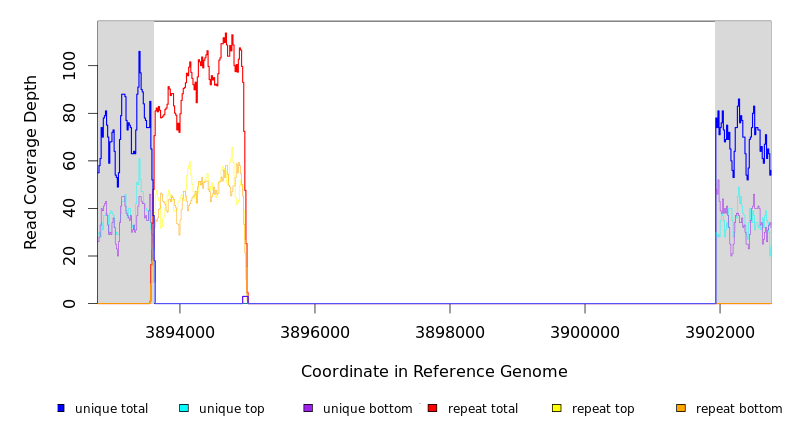 | * | ? | REL606 | = 3652533 | NA (NA) | 83 (1.220) | 55/146 | 0.1 | 100% | noncoding (1443/1443 nt) | IS150 | repeat region |
