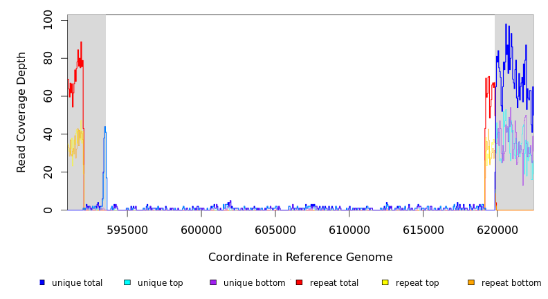 | seq id | start | end | size | ←reads | reads→ | gene | description | |||