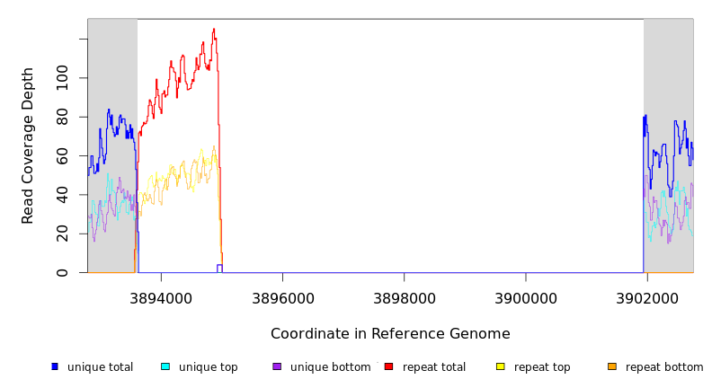 | * | ? | REL606 | = 3652533 | NA (NA) | 82 (1.360) | 58/146 | 0.0 | 100% | noncoding (1443/1443 nt) | IS150 | repeat region |