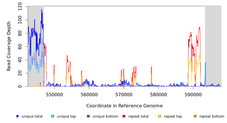 | seq id | start | end | size | ←reads | reads→ | gene | description | |||