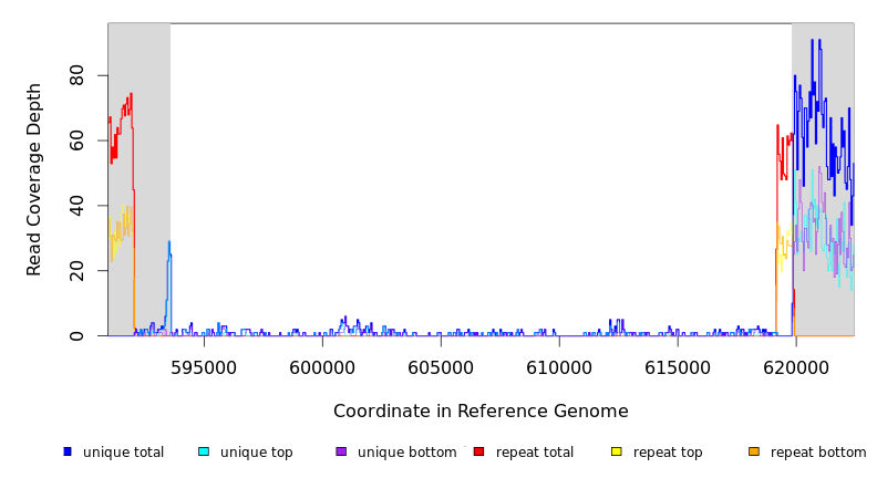 | seq id | start | end | size | ←reads | reads→ | gene | description | |||