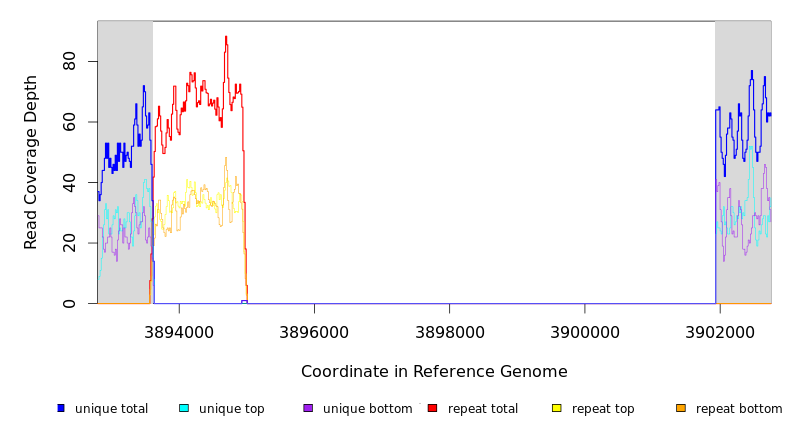 | * | ? | REL606 | = 3652533 | NA (NA) | 67 (1.410) | 42/146 | 0.1 | 100% | noncoding (1443/1443 nt) | IS150 | repeat region |