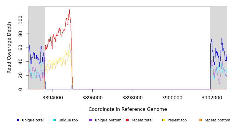| * | ? | REL606 | = 3652533 | NA (NA) | 66 (1.460) | 46/146 | 0.1 | 100% | noncoding (1443/1443 nt) | IS150 | repeat region |
