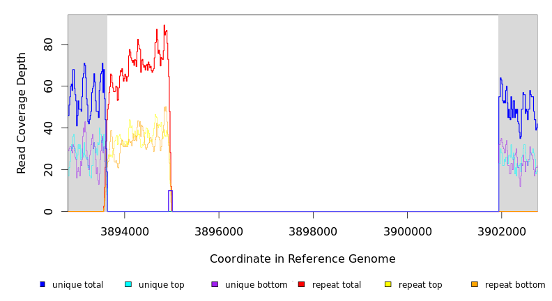 | * | ? | REL606 | = 3652533 | NA (NA) | 52 (1.080) | 36/146 | 0.3 | 100% | noncoding (1443/1443 nt) | IS150 | repeat region |