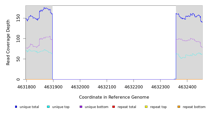 | seq id | start | end | size | ←reads | reads→ | gene | description | |||