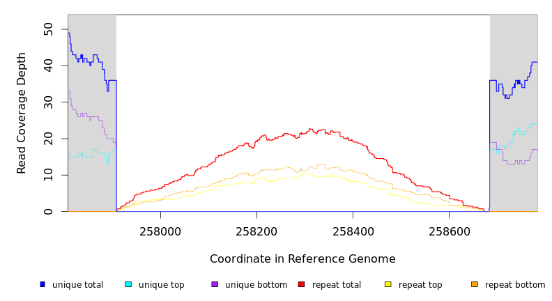 | seq id | start | end | size | ←reads | reads→ | gene | description | |||