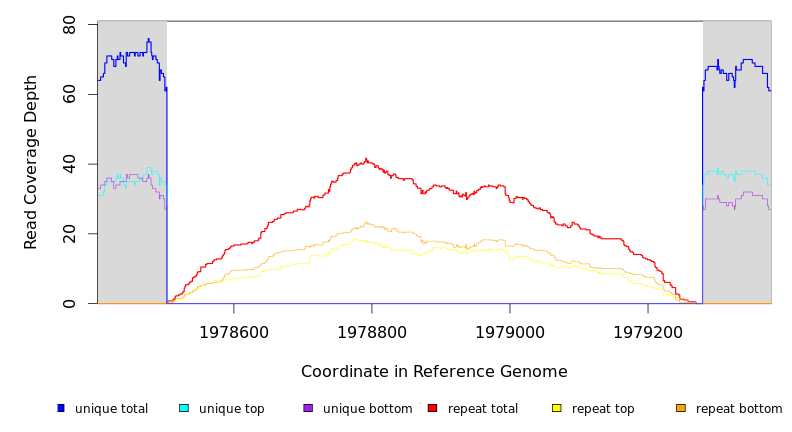 | seq id | start | end | size | ←reads | reads→ | gene | description | |||