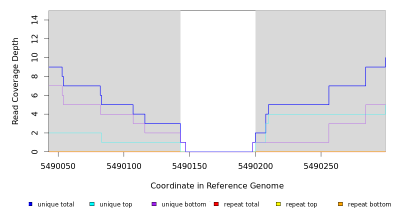 | seq id | start | end | size | ←reads | reads→ | gene | description | |||