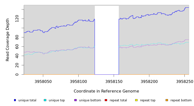 | seq id | start | end | size | ←reads | reads→ | gene | description | |||