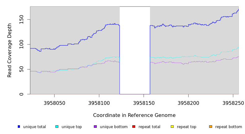 | seq id | start | end | size | ←reads | reads→ | gene | description | |||