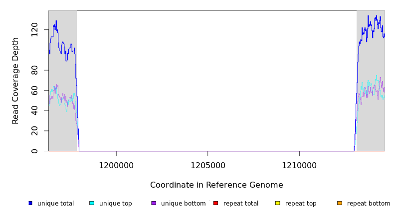 | seq id | start | end | size | ←reads | reads→ | gene | description | |||
