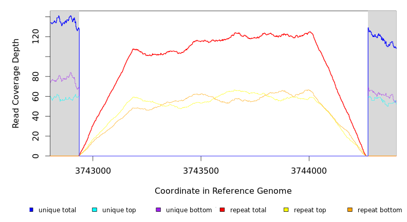 | seq id | start | end | size | ←reads | reads→ | gene | description | |||