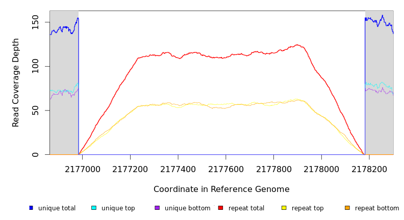 | seq id | start | end | size | ←reads | reads→ | gene | description | |||