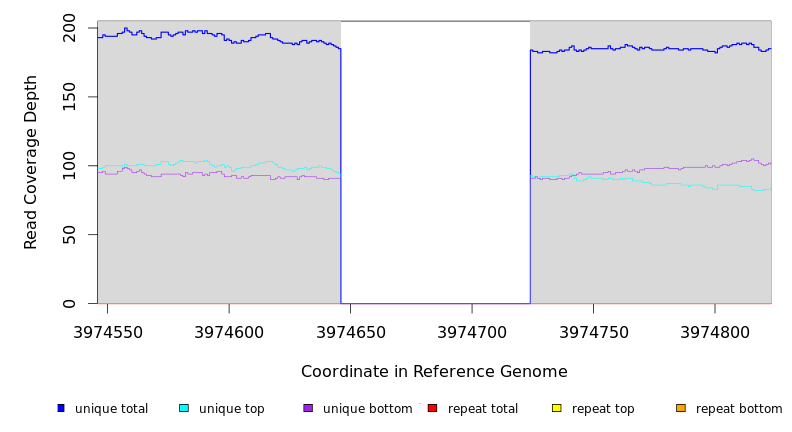 | seq id | start | end | size | ←reads | reads→ | gene | description | |||