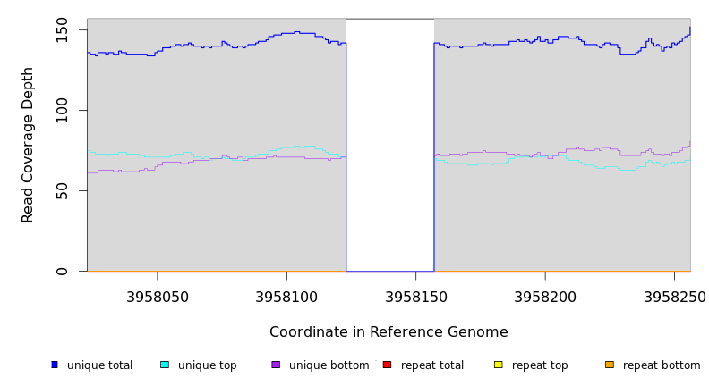 | seq id | start | end | size | ←reads | reads→ | gene | description | |||