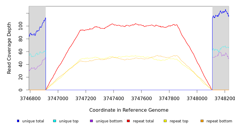 | seq id | start | end | size | ←reads | reads→ | gene | description | |||